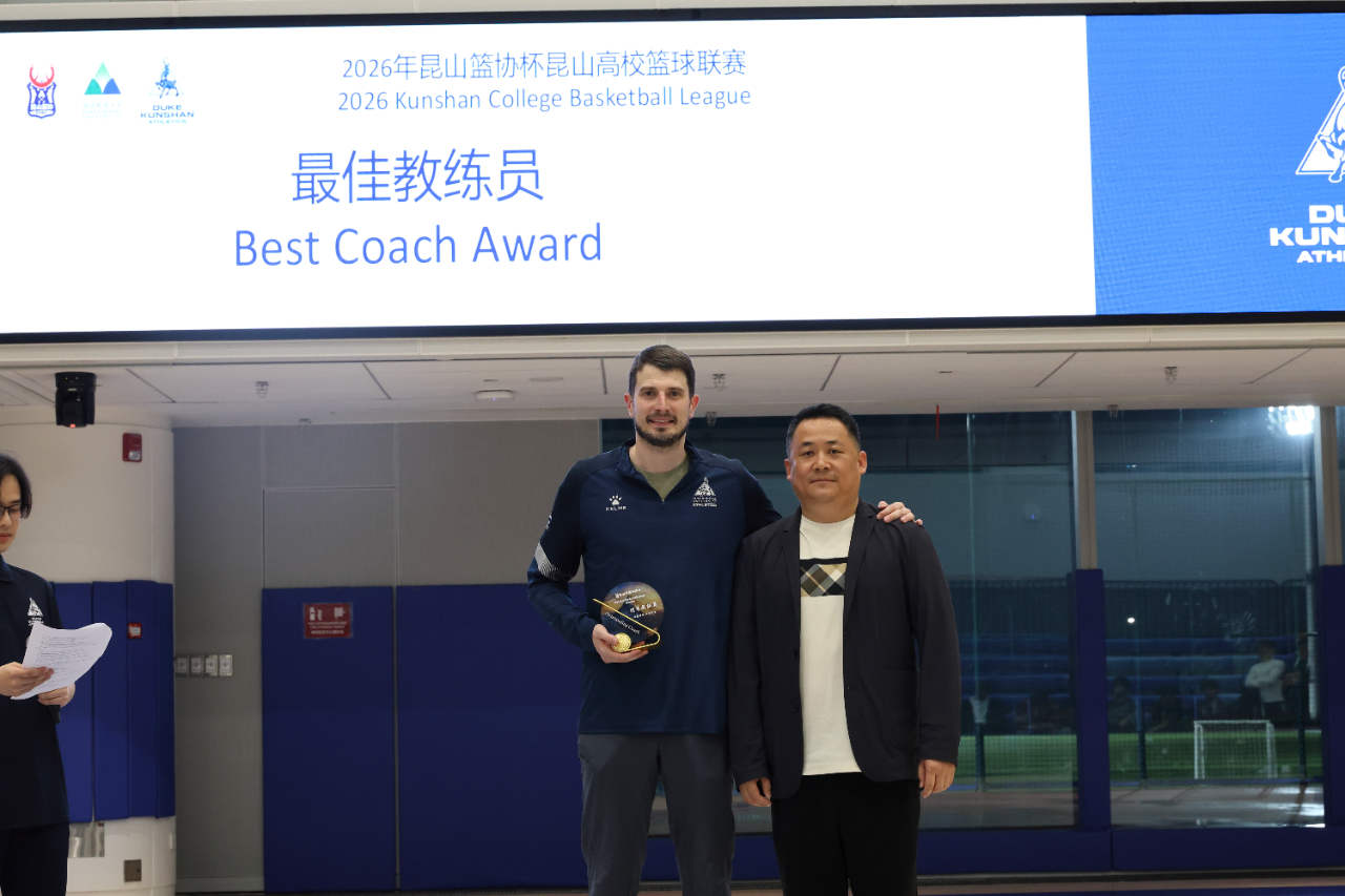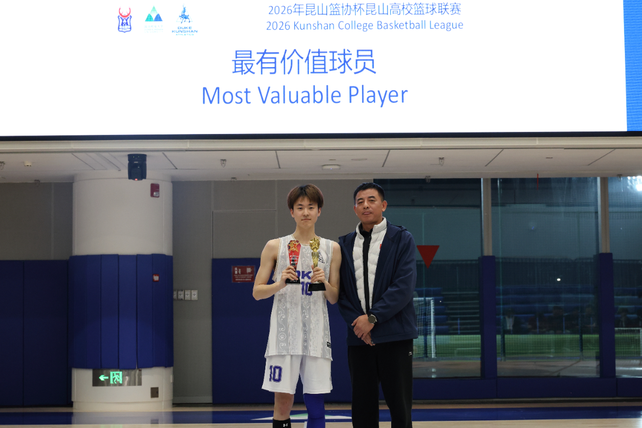 After five days of competition and intense matches, the 2026 Kunshan Basketball Association Cup Kunshan University Basketball League came to a successful conclusion recently. Duke Kunshan University basketball varsity team reverse the situation throughout the tournament and ultimately won the championship with a perfect record!