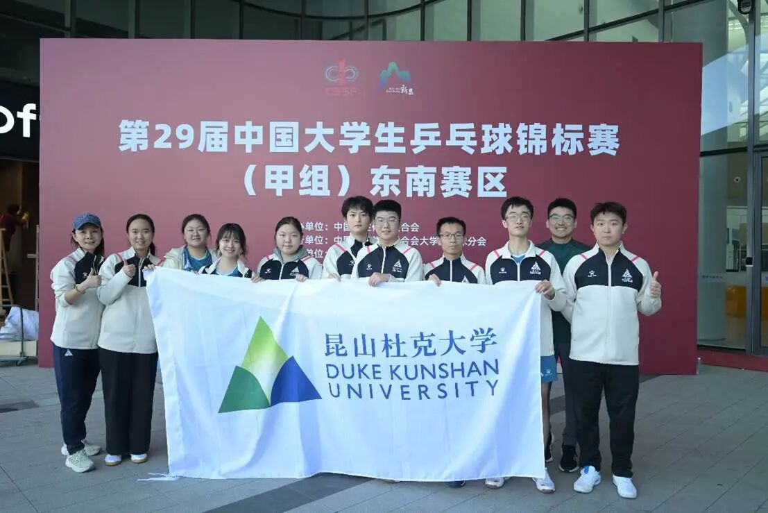 At the recently concluded 29th China University Table Tennis Championship (Southeast Division), Duke Kunshan University sent a nine-member team to compete in men’s singles, women’s singles, men’s doubles, women’s doubles, and mixed doubles against top universities from the region. This marks the first time the Duke Kunshan University table tennis team has participated in a national competition.