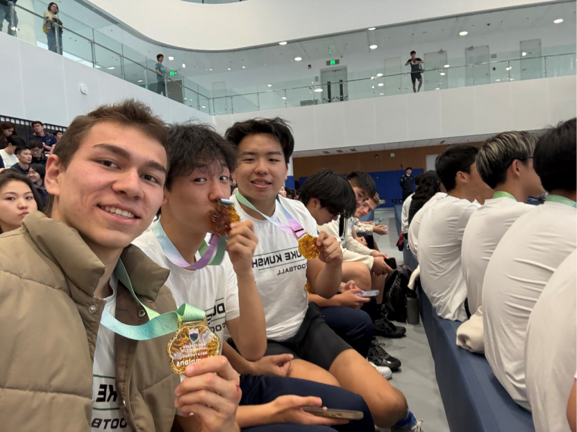 It was my passion for football and the DKU community that motivated me. Not everyone can join varsity, but the Football Club ensures every student has a chance to play, no matter their skill level. We organize Saturday training sessions, intramurals, and friendly matches with local teams. We also gather to watch games together—sometimes Premier League late at night, or trips to Shanghai and Suzhou for Chinese Super League matches.