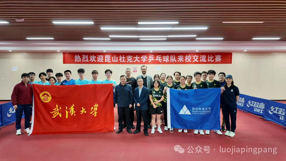 The afternoon of October 24 saw a lively atmosphere in the table tennis hall of the Zhuo’er Gymnasium at Wuhan University, as the Duke Kunshan University (DKU) Table Tennis Varsity visited for a friendly exchange match. The opening ceremony was attended by distinguished guests including Li Xiaoshu, Assistant to the President of DKU; Zarko,DKU Athletics Director; Hu Jiming, Secretary of the Sports Department of Wuhan University; Qin Yinyin, Deputy Director of the Sports Department; Li Bingfang, Coach of the DKU Table Tennis Team; and Chen Chang, Coach of Wuhan University’s Sunshine Table Tennis Team. Together, they celebrated a sports event symbolizing friendship and collaboration between the two universities.